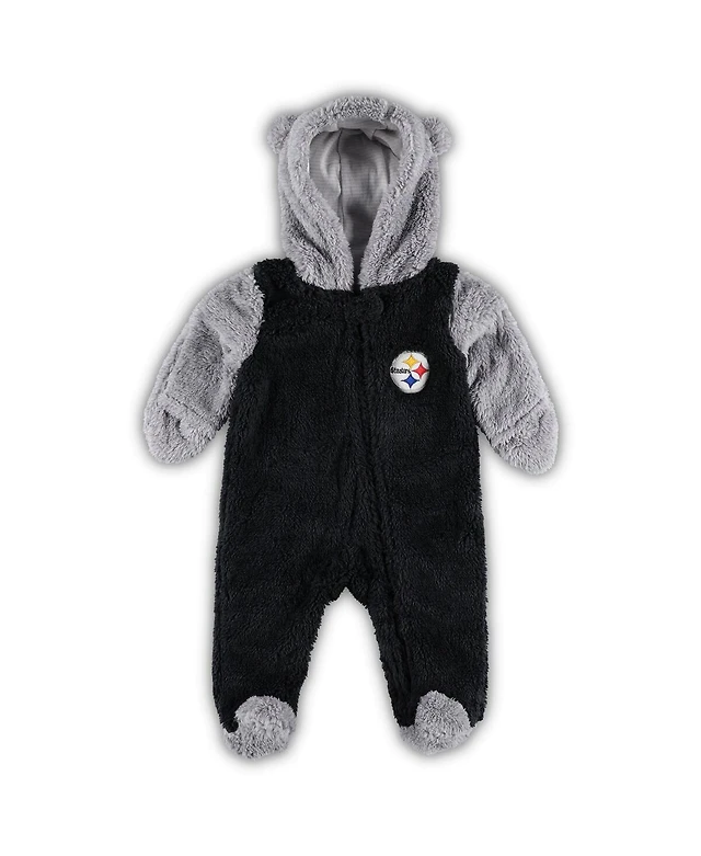 Newborn Infant Boys and Girls Black, Gray Pittsburgh Steelers Game Nap Teddy Fleece Bunting Full-Zip Sleeper