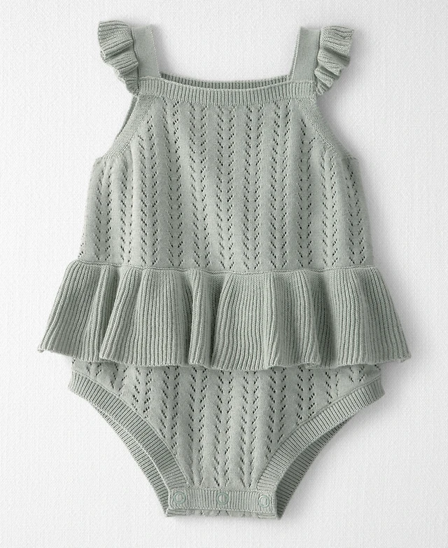 Deux par Baby Girl Cotton Pointelle Jersey Romper with Frills Green