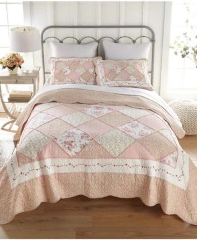Linery & Co. Pastel Coral Pattern Microfiber Quilt Set With Shams
