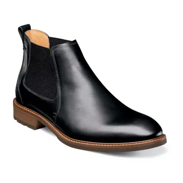 Florsheim Mens Chalet Plain Toe Gore Stacked Heel Chelsea Boots