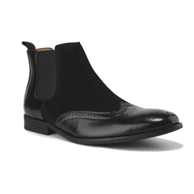 Gino Vitale Men's Wingtip Brogue Two-Tone Chelsea Boots
