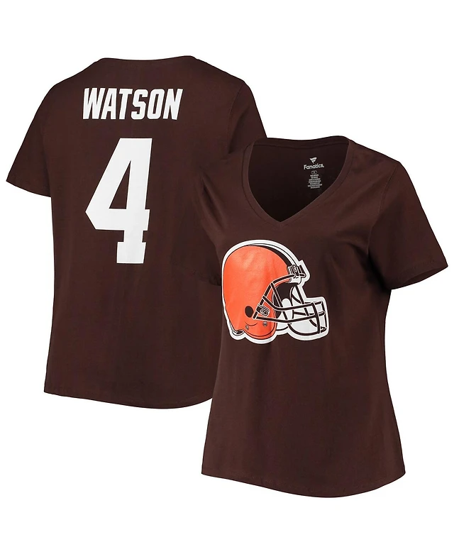 Women's Fanatics Deshaun Watson Brown Cleveland Browns Plus Player Name and Number V-Neck T-shirt