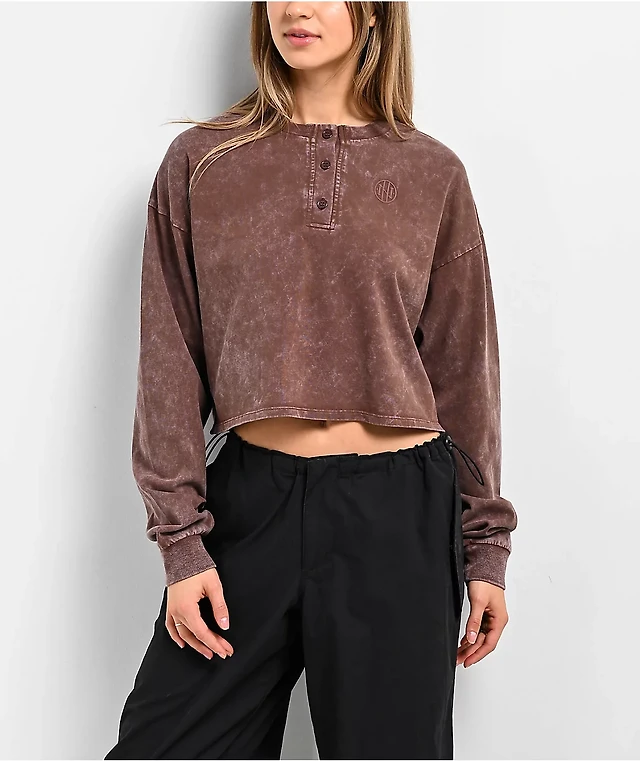 Ninth Hall Fundamentals Kaliska Brown Boxy Crop Long Sleeve T-Shirt
