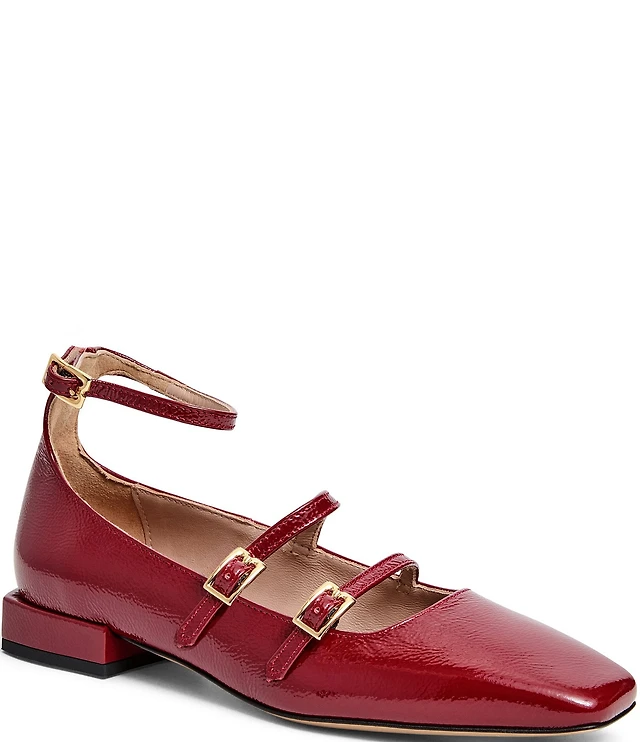 Bruno Magli Petra Crinkle Patent Ankle Strap Mary Jane Flats