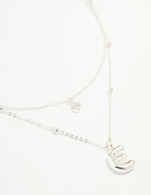 Silver Plated Cubic Zirconia & Bubble Letter L Layered Necklace