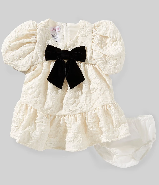 Allison & Kelly Faux Pearl Embellished Bow Velvet Drop Waist Bubble Dress
