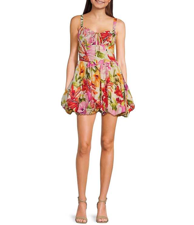 Honey and Rosie Floral Print Poplin Corset Bodice Bubble Hem Dress