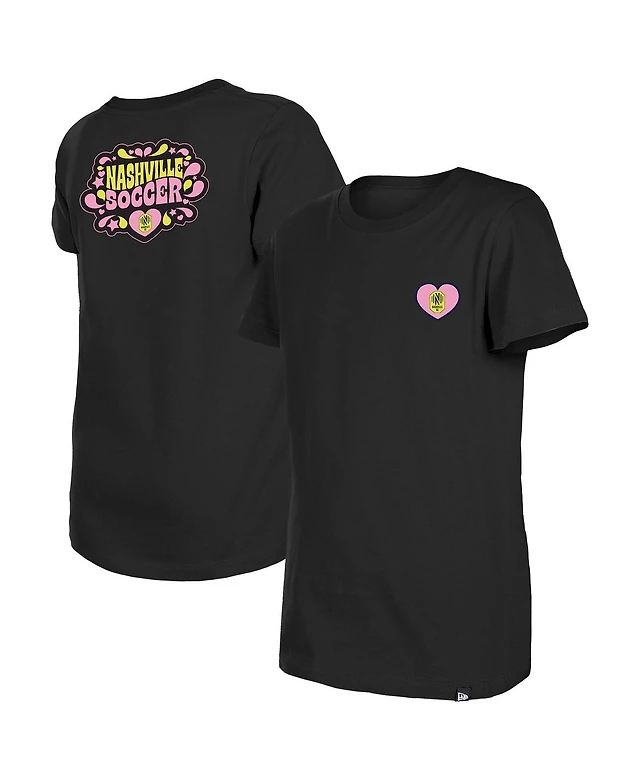 New Era Big Girls Black Nashville Sc Bubble Heart T-Shirt
