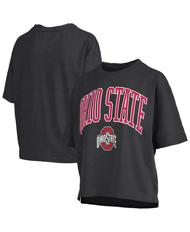 Pressbox Women's Black Ohio State Buckeyes Nelson Arch Over Logo Waist Length Oversized Slub T-Shirt