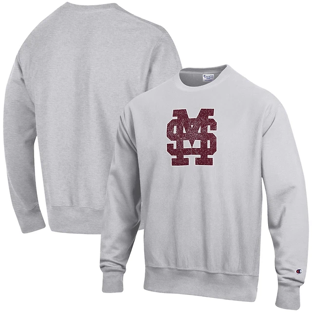 Men's Champion Heathered Gray Mississippi State Bulldogs Vault Logo Reverse Weave Pullover Sweatshirt