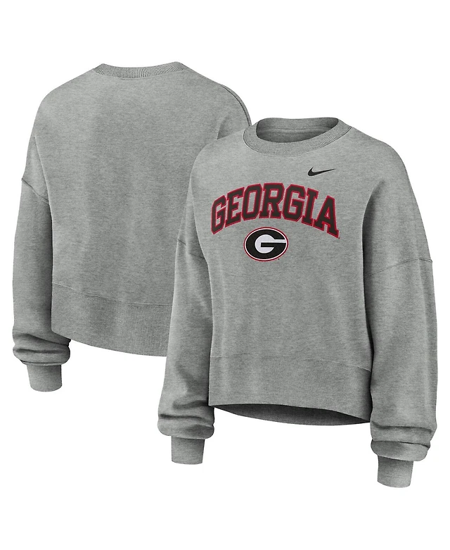 Nike Women's White Georgia Bulldogs Color-Block Oversized Cropped Pullover Sweatshirt