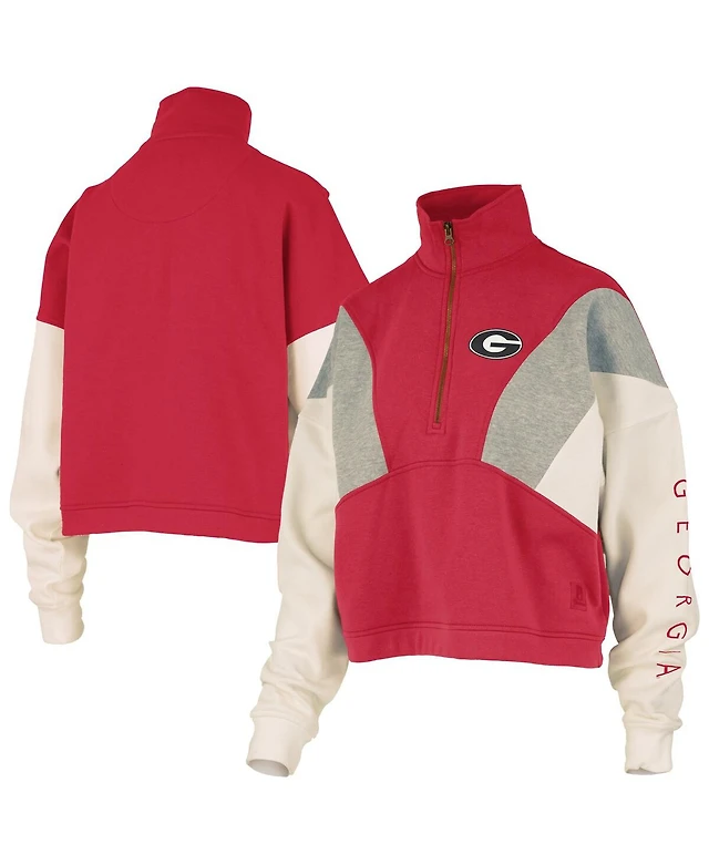 Pressbox Women's Red Georgia Bulldogs Ferrara Color Block Quarter-Zip Sweatshirt