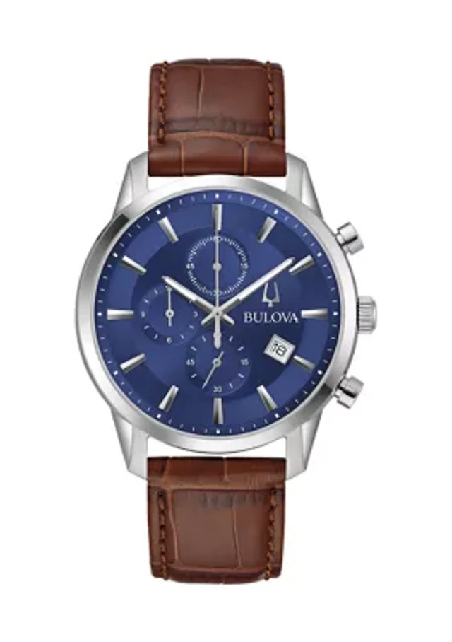 Bulova Men's Chronograph Wilton Blue Leather Strap Watch 46.5mm