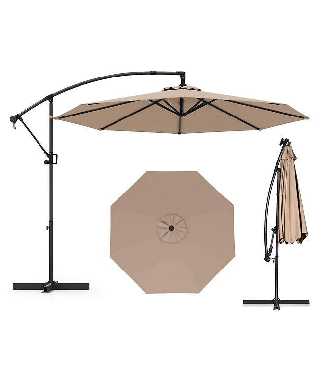 Gymax 10 Ft Patio Offset Umbrella w/ X-shaped Base Infinite Tile & 360° Rotation