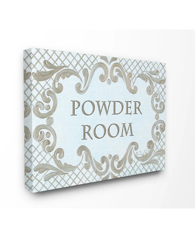 Stupell Industries Home Decor Powder Room Aqua and Gold Lattice Bathroom Canvas Wall Art, 16" x 20"