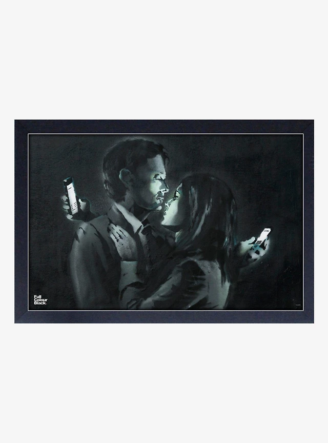 Banksy Mobile Phone Lovers Portrait Framed Wood Wall Art