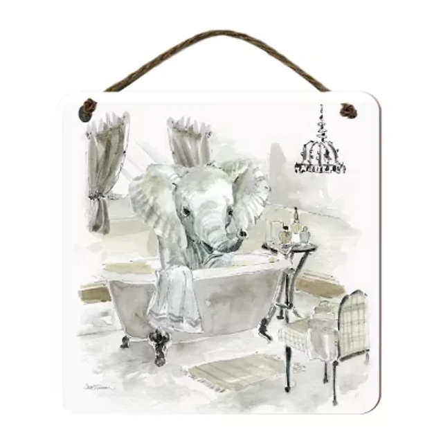 Courtside Market Elephant Bath 12x12 Artboard With Twine Wood Wall Art