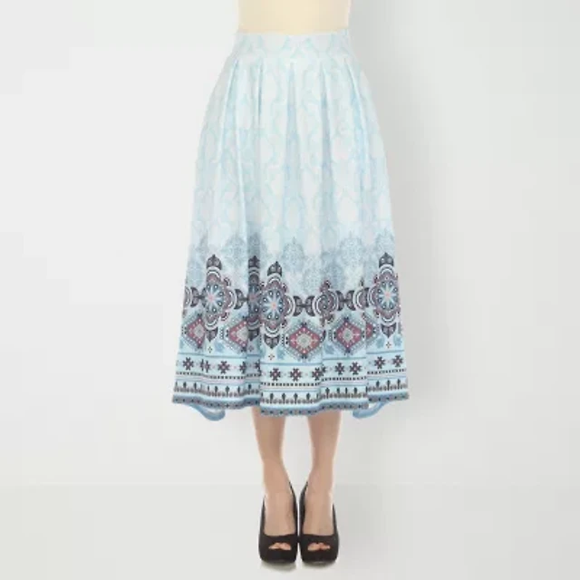 Gibson & Latimer Woven Geometric Fan Print Mid Rise A-Line Flounce Midi Coordinating Skirt
