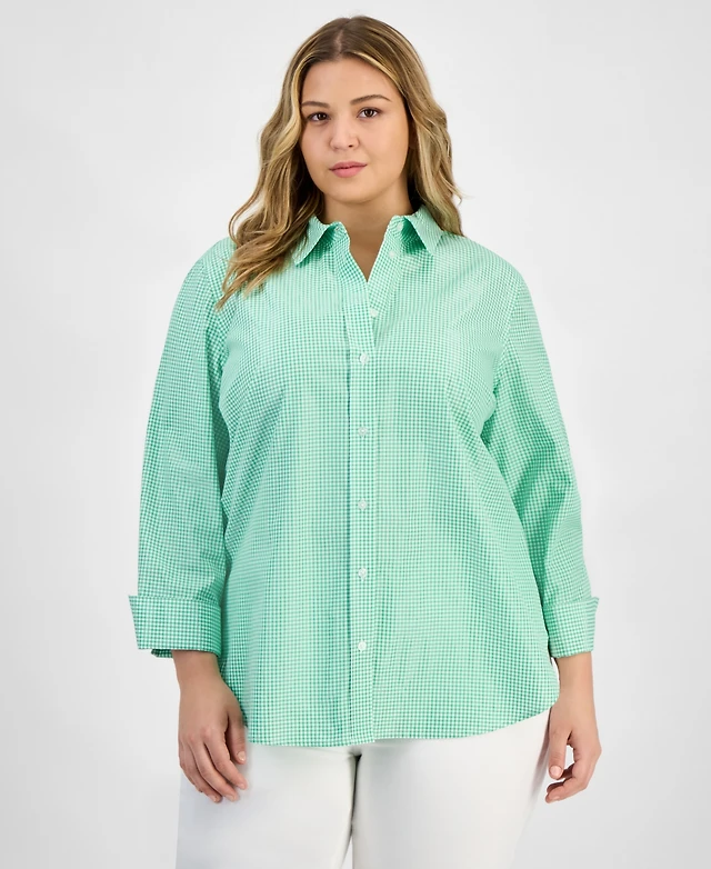 Rafaella Plus Ruched Front Poplin Long Sleeve Button-Down Shirt