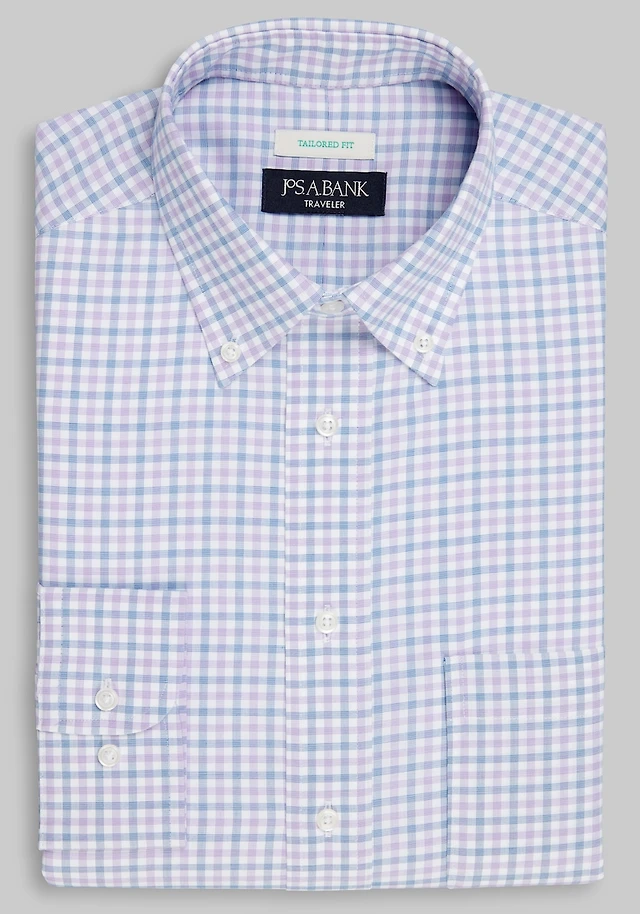 Men's Jos. A. Bank Traditional Fit Button-Down Collar Solid Dress Shirt at Jos. A. Bank, Blue