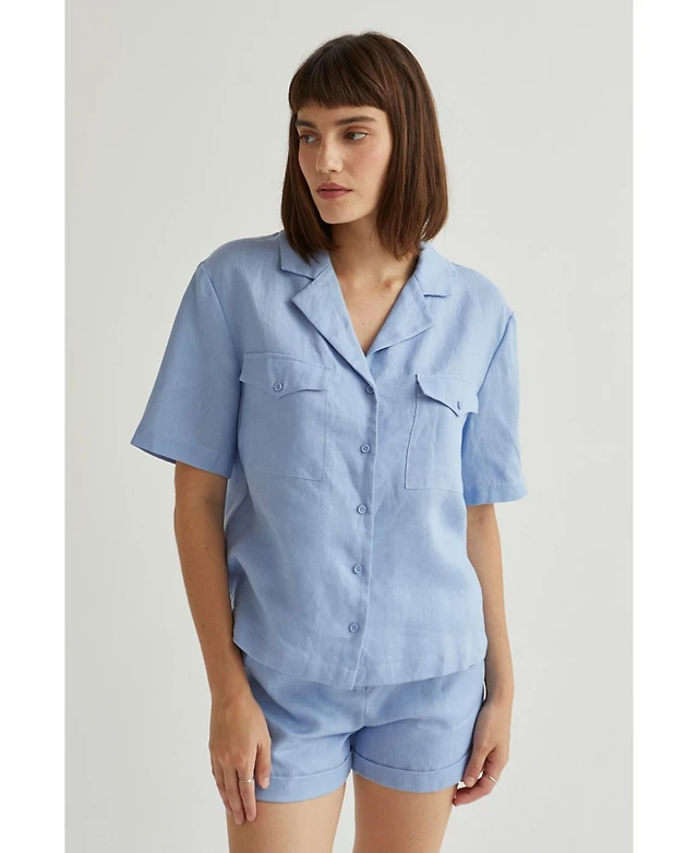 Freshwater Short Sleeve Button Up Shirt Ocean