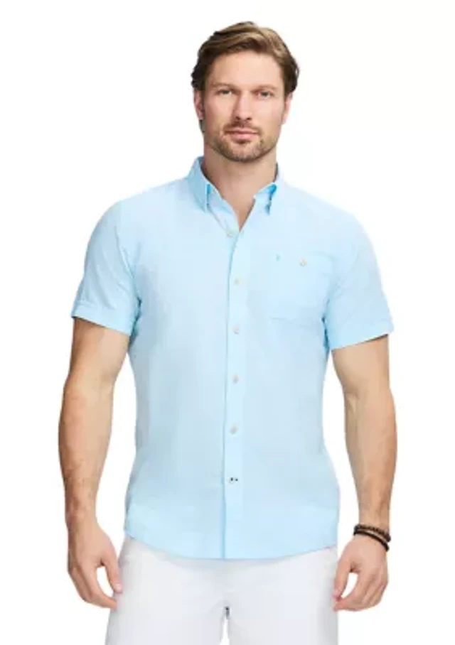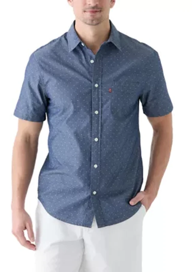 Short Sleeve Dockside Chambray Stripe Button Up Shirt