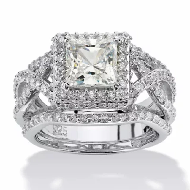 2.82 TCW CZ Platinum-plated Silver 3-Piece Crossover Halo Bridal Ring Set