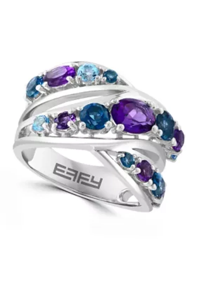 Amethyst, Blue Topaz and London Blue Topaz Ring in Sterling Silver