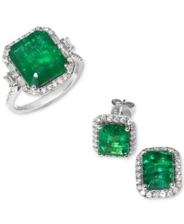 Effy Emerald Diamond Stud Earrings Statement Ring In 14k White Gold