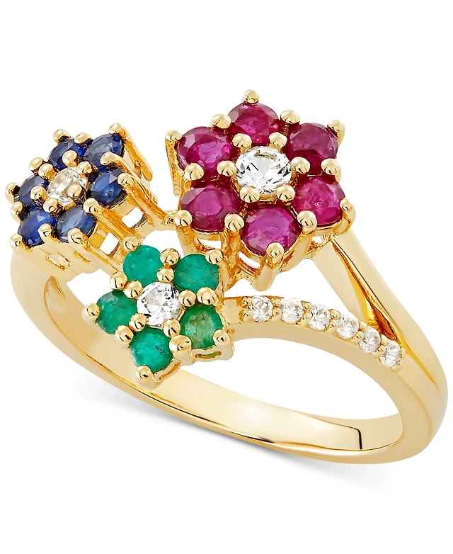 Diamond and Multi Gemstone Ring in Sterling Silver and 14K Yellow Gold