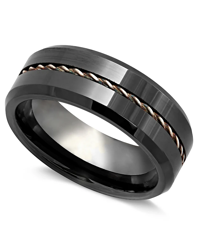 Stainless Steel Cubic Zirconia Ring with Black and Gold Tone Ion Plating