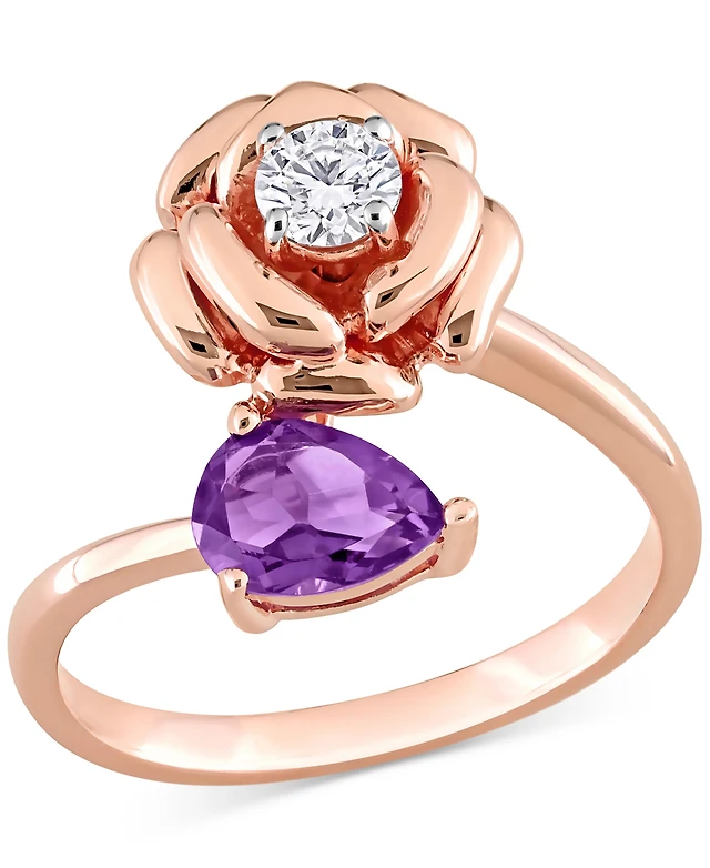 Pear-Shaped Tanzanite and 1/10 CT. T.w. Diamond Tri-Sides Bypass Ring in 10K Rose Gold