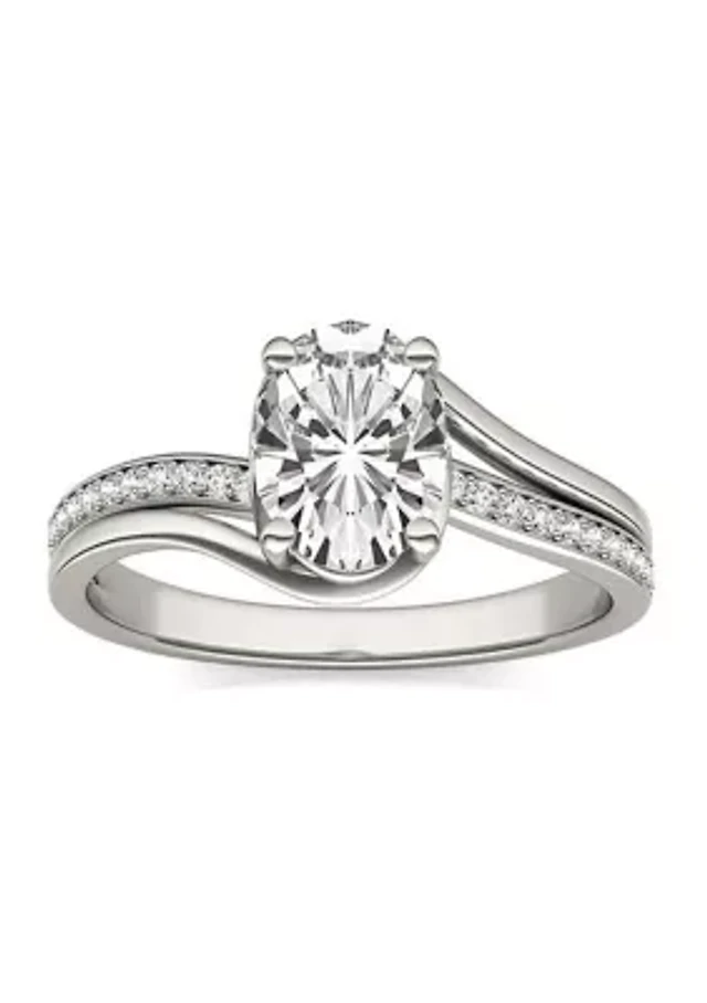 1-1/2 CT. T.w. Certified Oval Diamond Frame Bypass Swirl Engagement Ring in 14K White Gold (I/Si2)