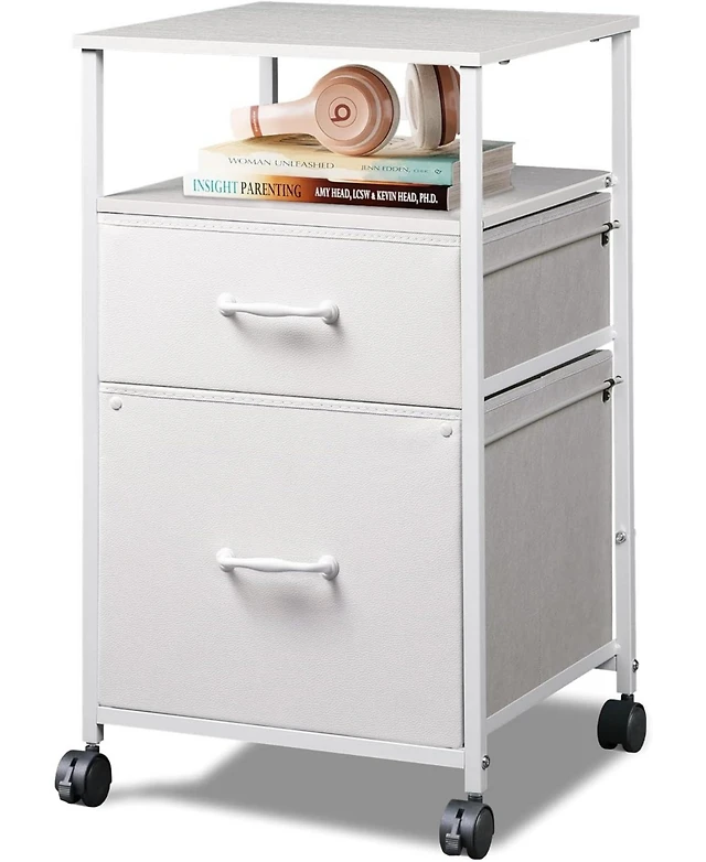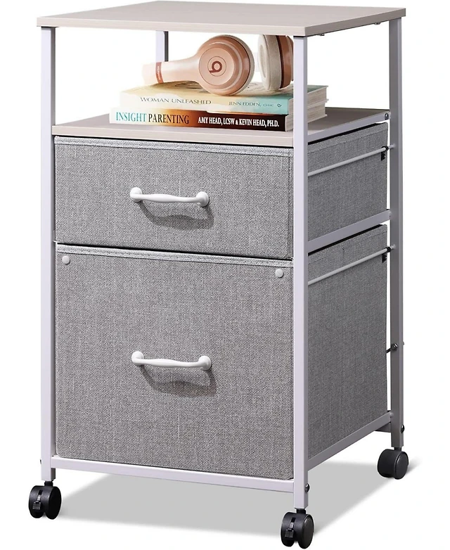 Merrick Lane Delilah Slim Linen Tower Organizer With Storage Drawer, Upper And Lower Cabinets Magnetic Closure Doors Open Shelf