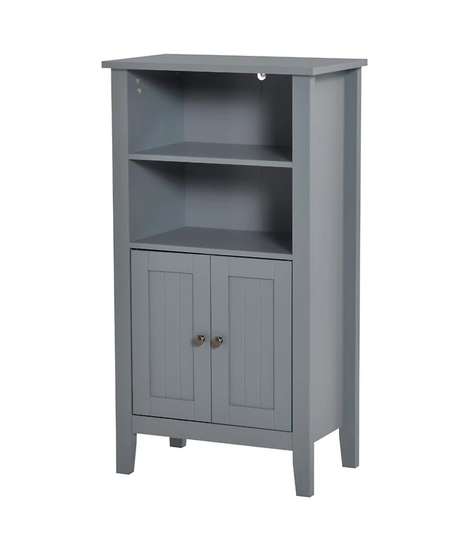 Gymax Bathroom Floor Storage Cabinet Side Table w/ Open Compartment & Adjustable Shelf