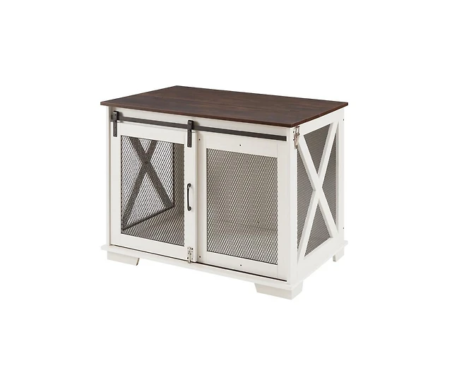 Mondawe Vintage White Rustic Wood Wall Storage Cabinet with Two Sliding Barn Door