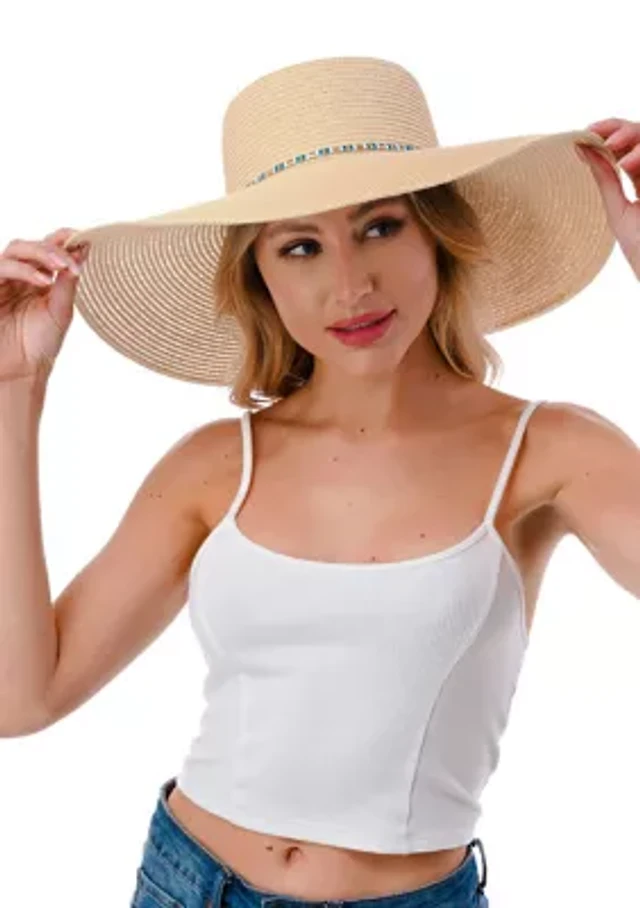 Straw Hat with Glass Beaded Trim