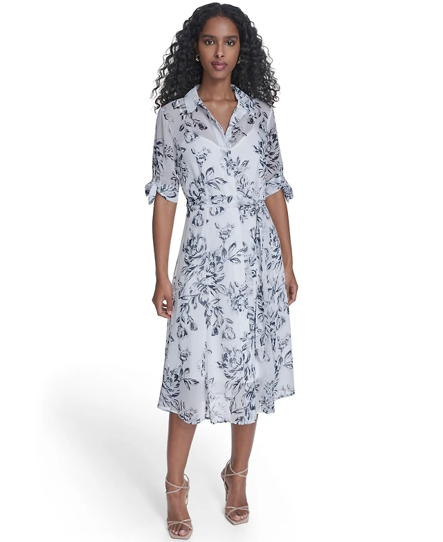 Calvin Klein Petite Tie-Sleeve Collared Midi Shirt Dress
