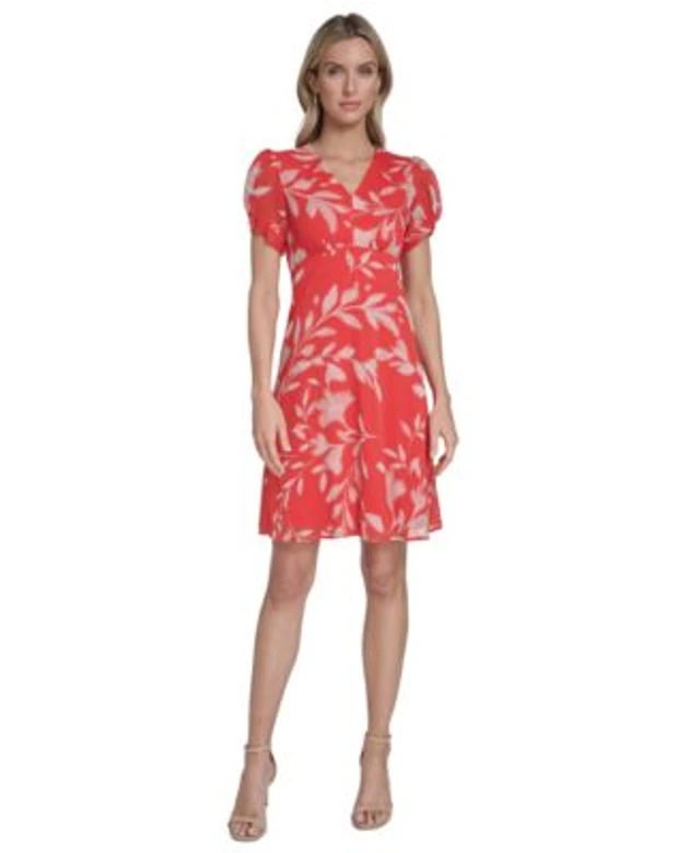 Calvin Klein Women's Printed Puff-Sleeve Shift Dress