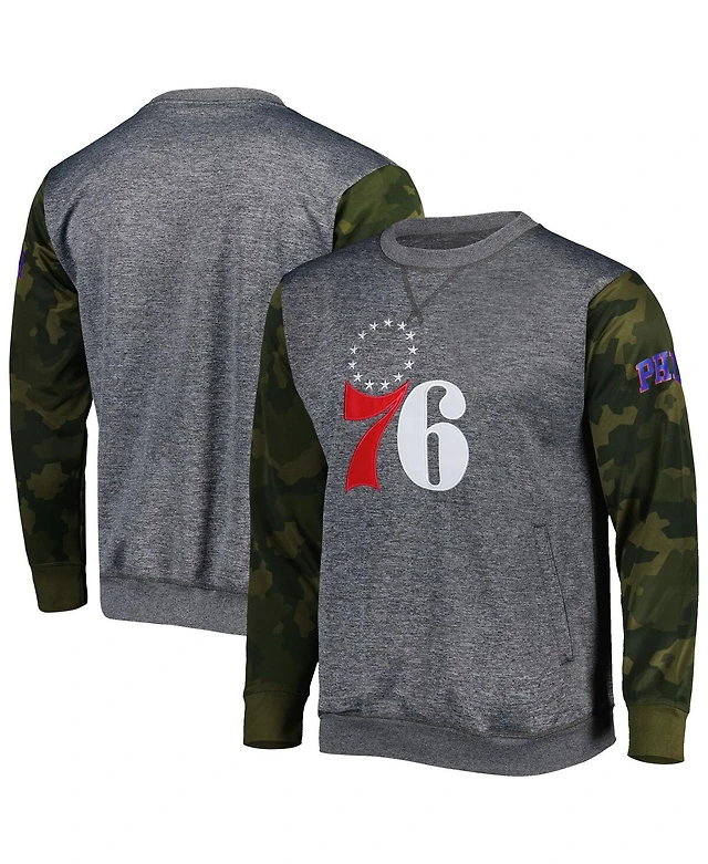 Men's Fanatics Heather Charcoal Philadelphia 76ers Camo Stitched Sweatshirt