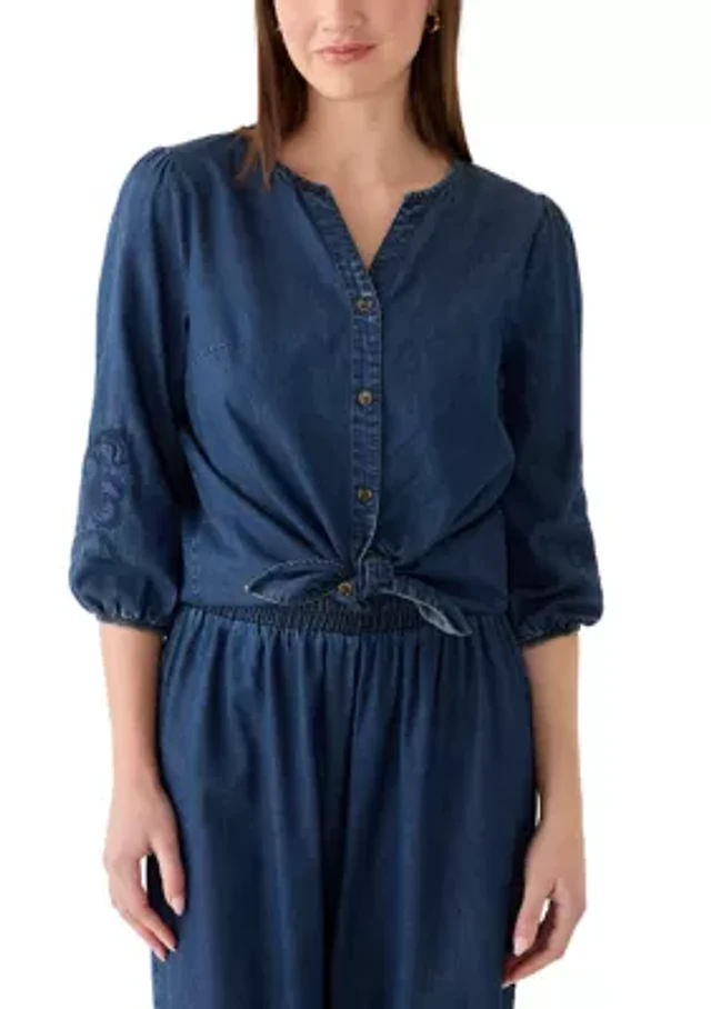 T Tahari Women's Short-Blouson-Sleeve Button-Front Shirt