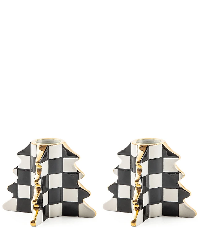 MacKenzie-Childs Holiday Collection Courtly Check® Tree Shaped Candle Holders, Set of 2