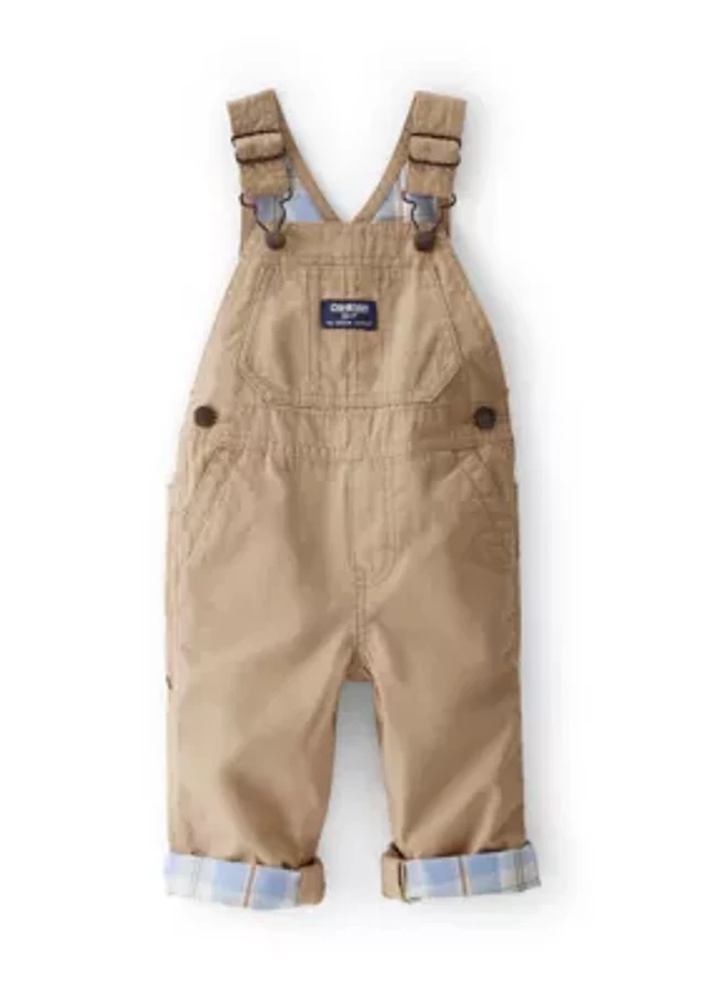 Baby Boys Lightweight Plaid-Lined Canvas Overalls