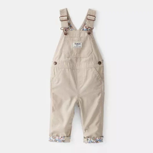 Baby Girls Lightweight Floral-Lined Canvas Overalls