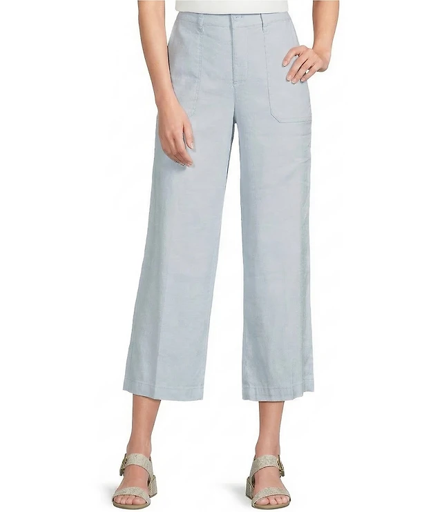 NYDJ Stretch Linen Blend High Rise Wide Leg Cargo Capri Pants