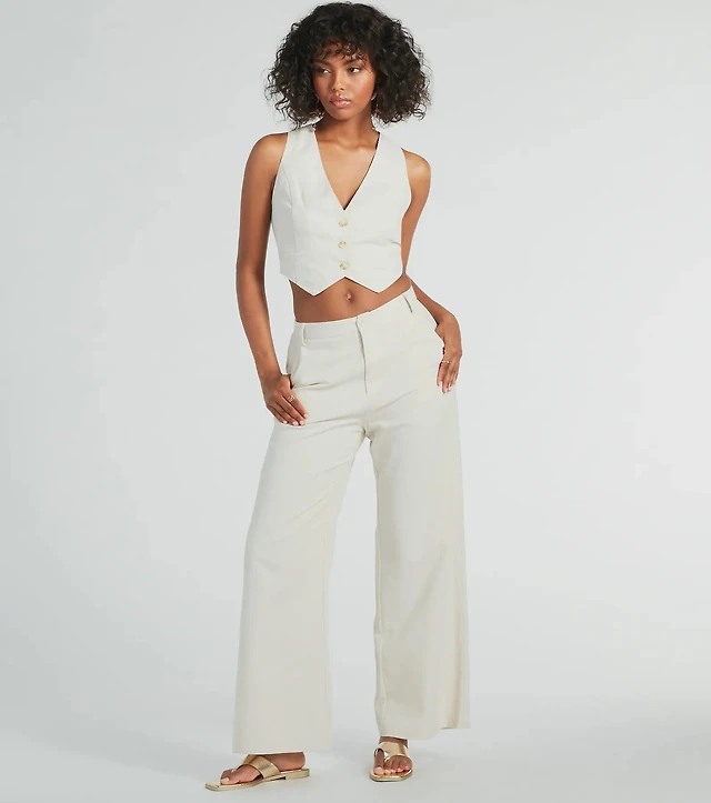 June & Vie Women's and High-Rise Wide-Leg Cargo Pants