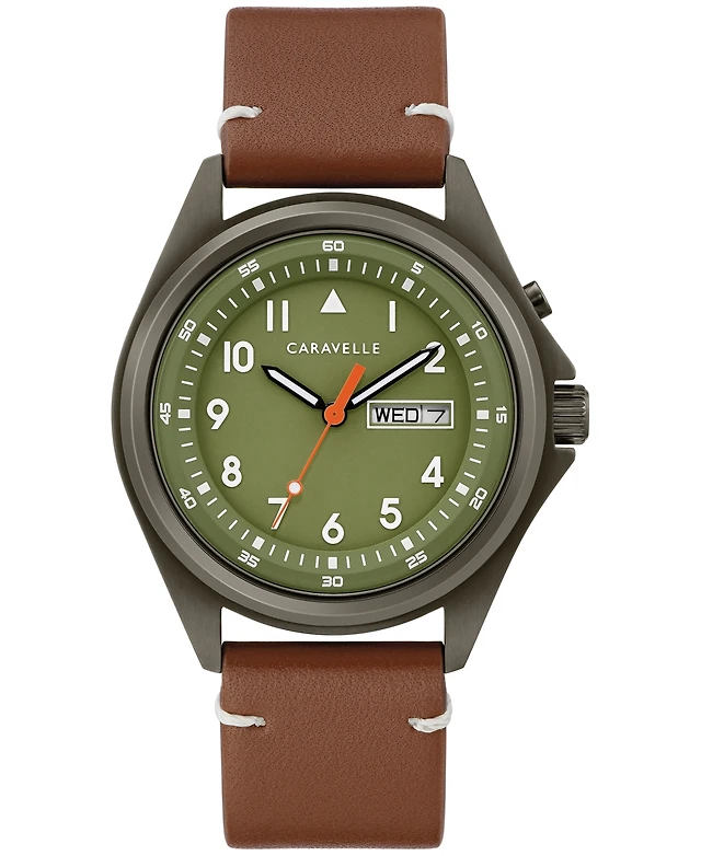 Caravelle Men's Traditional Brown Leather Strap Watch 40mm
