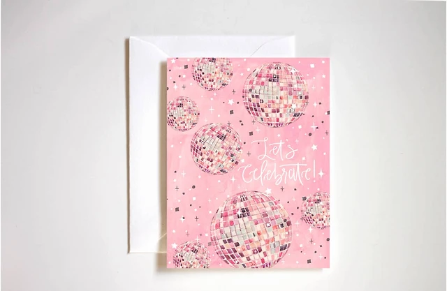 lets celebrate disco ball congratulations card