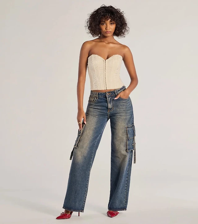 Playing For Keeps Cargo Straight Leg Denim Jeans