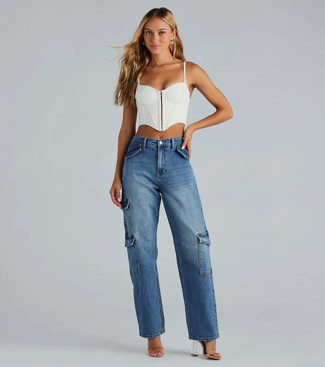 Streetwear Vibe High-Rise Cargo Denim Jeans